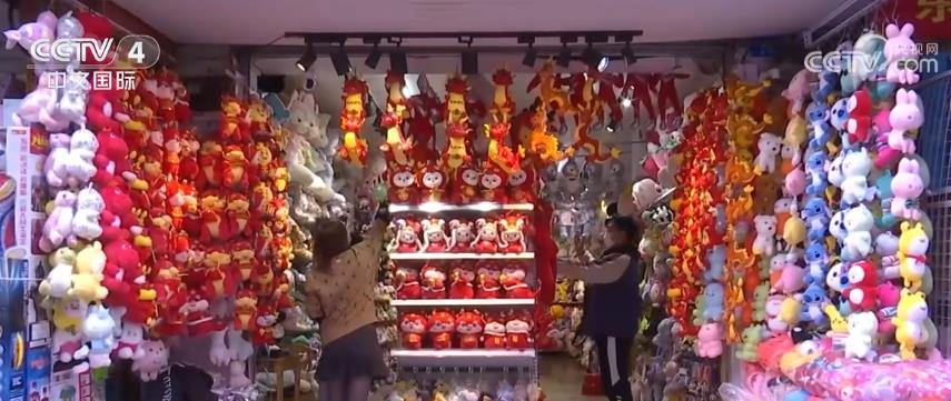 广西南宁街头,火热喜庆的氛围逐渐浓厚,线上线下年货市场不断升温。“龙元素”商品成为了年货市场的主角。