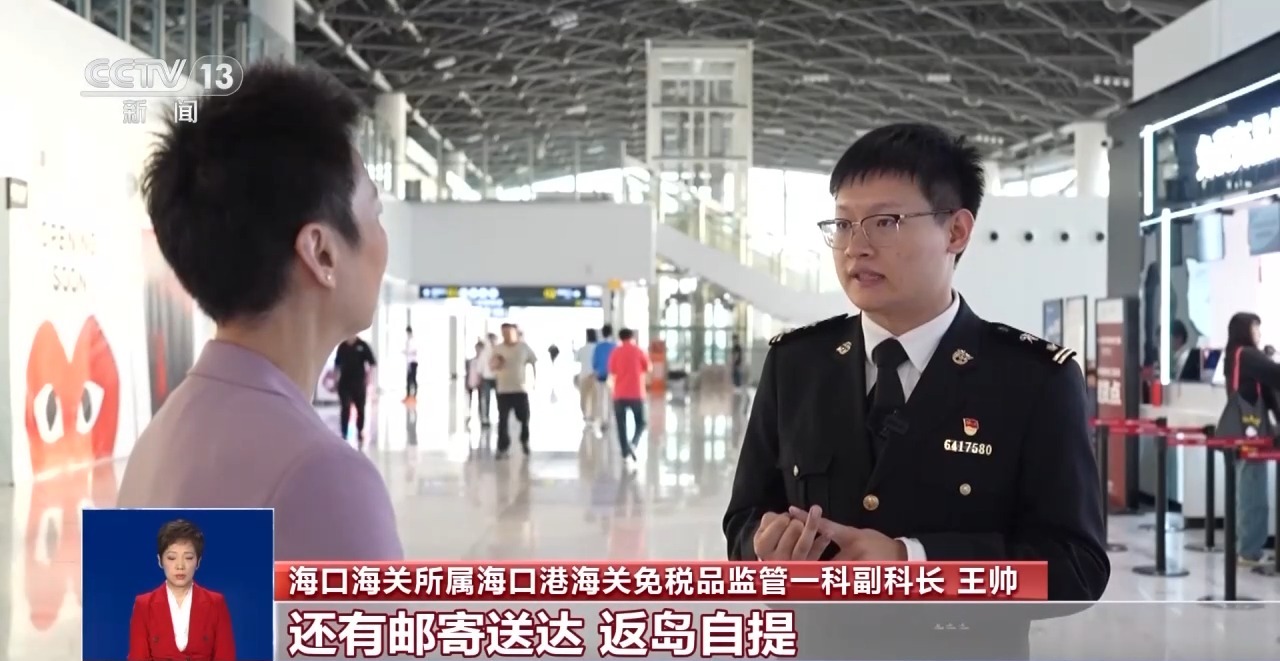 海口海关所属海口港海关免税品监管一科副科长 王帅:目前海南离岛免税购物的提货方式一共有5种,包括有隔离区提货,邮寄送达、返岛自提,以及去年4月1日正式实施的担保即提和即购即提。海关为了服务保障旅客的需求,7×24小时不间断开展离岛免税正面监管工作。