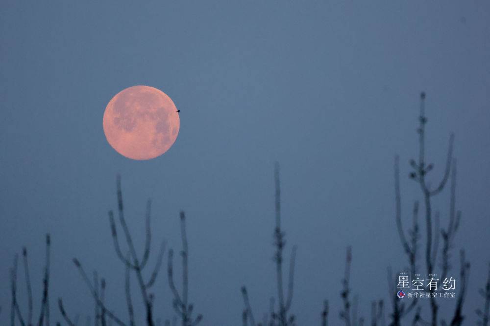 2023年2月5日,元宵节,“十五的月亮十六圆”。这是北京市星空摄影爱好者王俊峰2月6日在北京丰台区拍摄的“飞鸟掠圆月”。(本人供图)