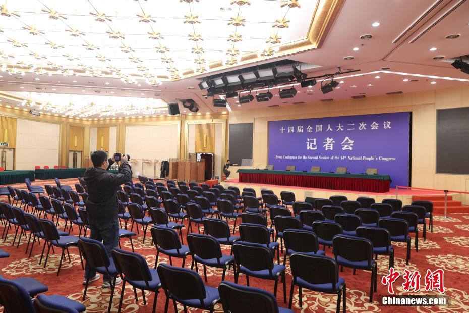 2月27日,在2024年全国两会即将召开之际,位于北京梅地亚中心的全国两会新闻中心正式启用。图为媒体记者在新闻中心内采访拍摄。中新社记者 蒋启明 摄