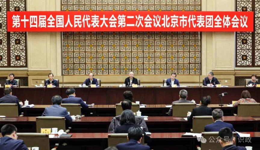 3月5日下午,十四届全国人大二次会议北京市代表团召开全体会议,审议政府工作报告。市委书记尹力代表,市委副书记、市长殷勇代表,市人大常委会主任李秀领代表,市委副书记刘伟代表参加审议。