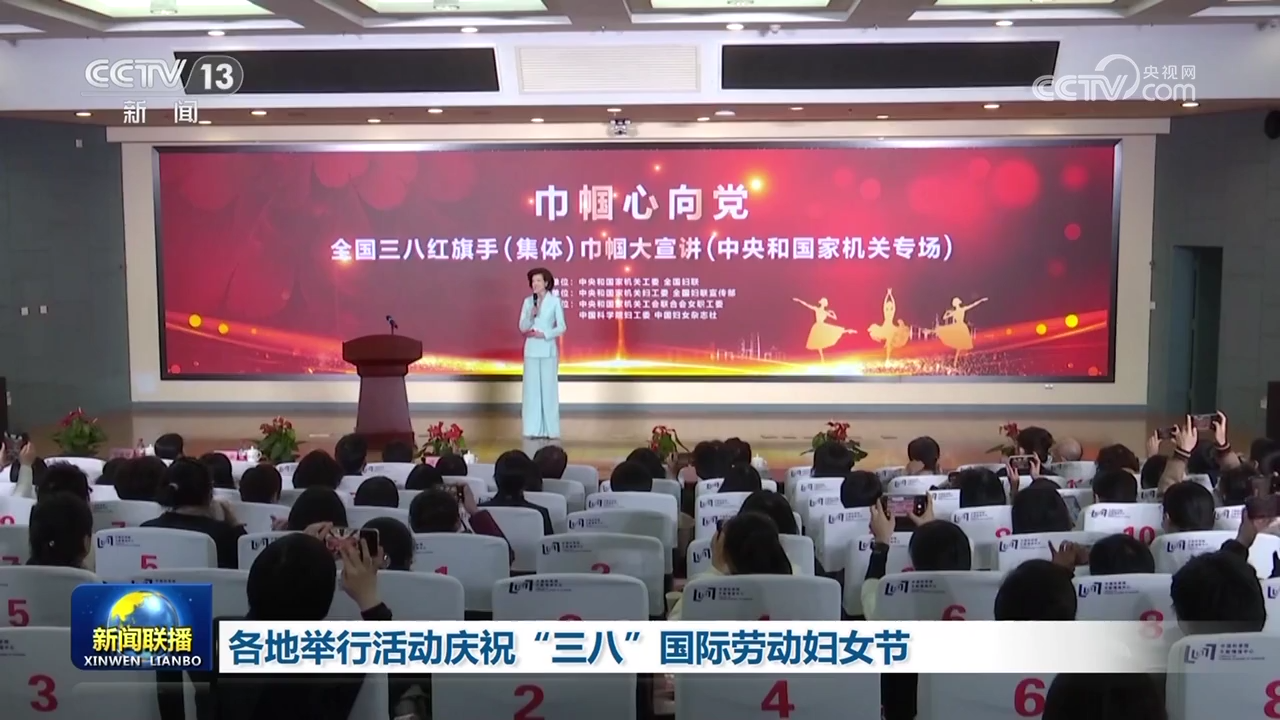 央视网消息(新闻联播):今天(3月8日)是“三八”国际劳动妇女节,各地组织丰富多彩的活动,给广大妇女送上节日祝贺与美好祝福。