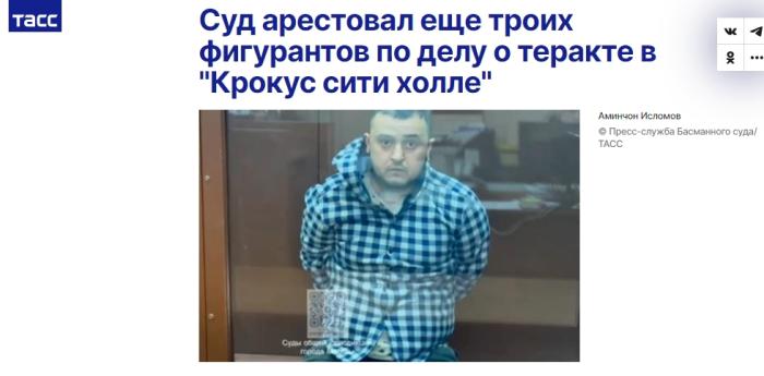 据塔斯社报道,当地时间25日,莫斯科巴斯曼区法院已批准对这3名恐袭事件涉案人员羁押候审,至5月22日。