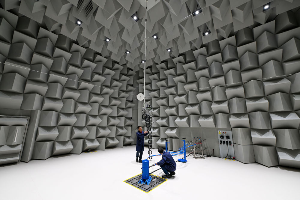 在天津丹佛斯全球制冷研发测试中心内拍摄的压缩机自动化声振性能检测室(孙凡越 摄)