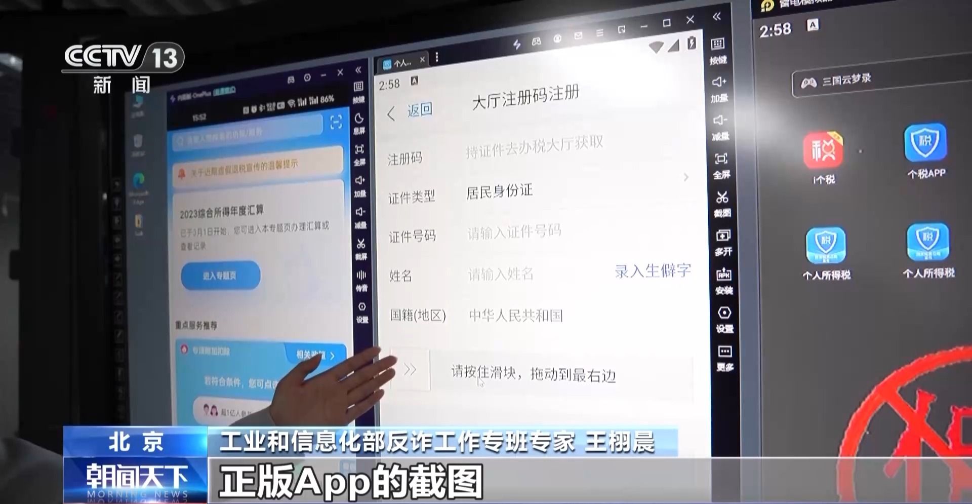 工业和信息化部反诈工作专班专家 王栩晨:我们可以试一下按动滑块,它这个基本上可以确认是一个正版App的截图,因为这里面没有办法输入任何信息,没有办法按动任何按钮。