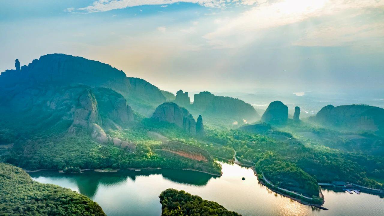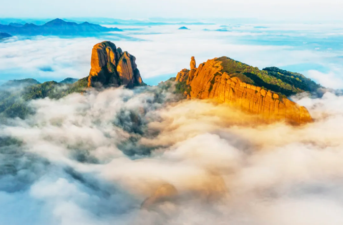 位于江西上饶市弋阳县的龟峰,既有精雕细刻的灵巧,又有刀削斧劈的粗犷。景区内有丹霞峰林、峰丛、孤峰石柱等自然景观23种,有着“丹霞模式标本”的美誉。