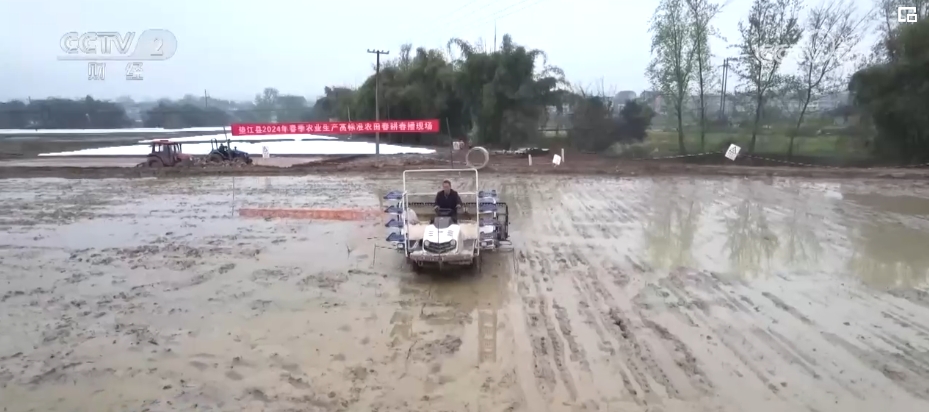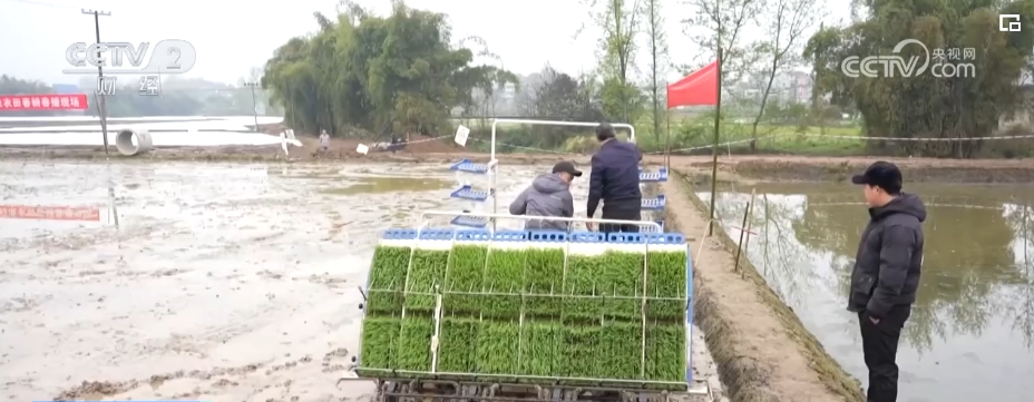 眼下,随着气温回升,在重庆垫江县的再生稻稻田里,种植户正抢抓农时,利用机械化插秧节本增效。