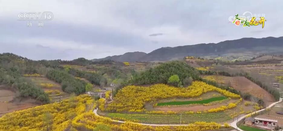 甘肃成县:百万株连翘花盛开 引游客纷至沓来
