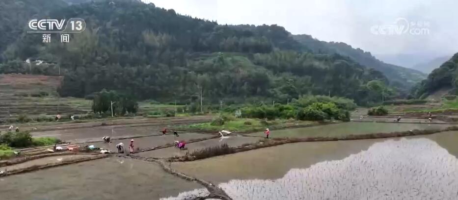 在福建永春桂洋镇桂洋村的这片水稻种植基地里,农户们头戴斗笠,忙着起秧苗、插秧苗,进行水稻插播工作。