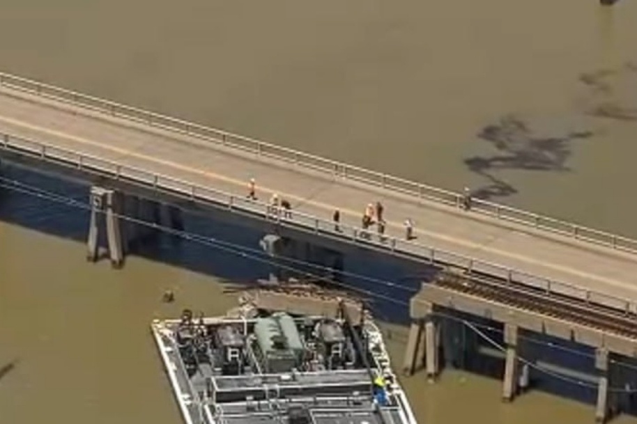 美国得州一大桥因驳船撞击关闭 部分石油泄漏