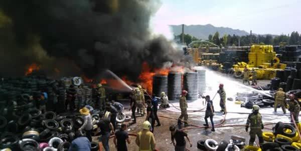 当地时间6月10日下午,伊朗德黑兰省沙赫里亚的一轮胎工厂仓库发生火灾。