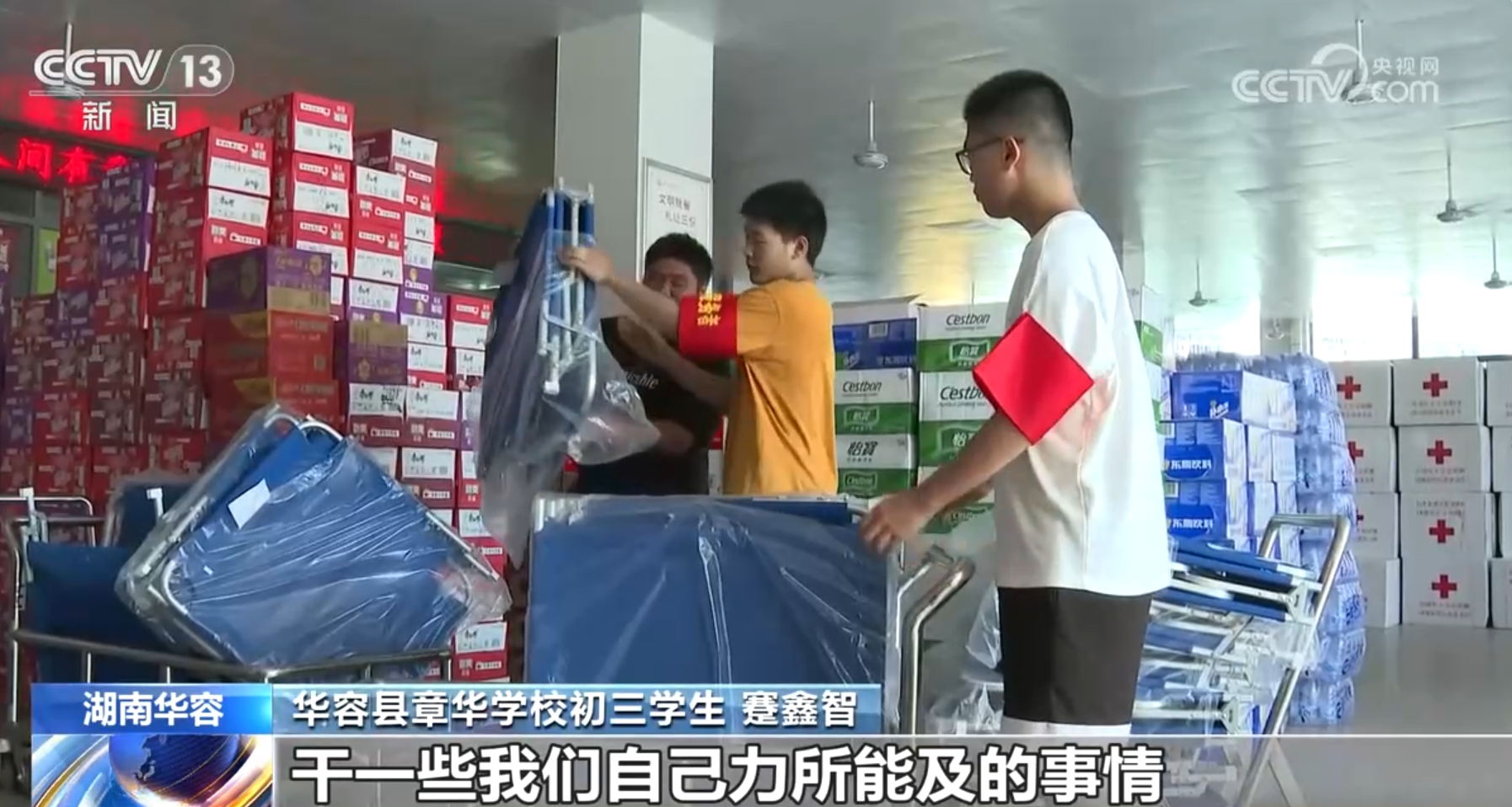 华容县章华学校初三学生蹇鑫智称:“有很多都是我认识的,都是看着我长大的乡亲,想为他们做一点事,重活都是老师在干,我们就干些轻活,干一些我们自己力所能及的事情。”