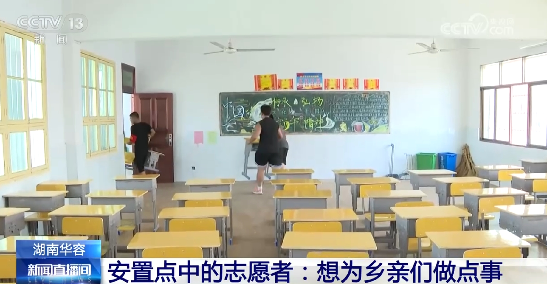 7月8日上午,章华学校又接到了新增安置场地的任务。志愿者们忙着腾出一间教室,然后再准备物资。