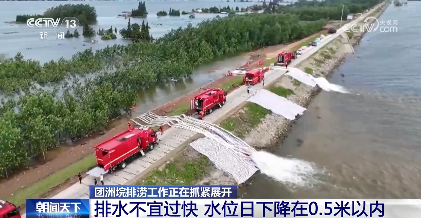 团洲垸溃口合龙后,目前正以电排和机排相结合为主,在持续排水。水利专家表示,为避免大堤出现滑坡、坍塌等险情,排水速度不能过快,水位每天下降的速度宜控制在0.5米以内。