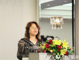 中国驻日本大使馆经济商务公使罗晓梅致辞。人民网 许可摄