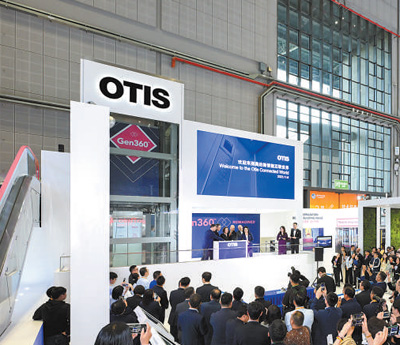 2023年11月6日,奥的斯在第六届进博会上发布数字化创新技术。