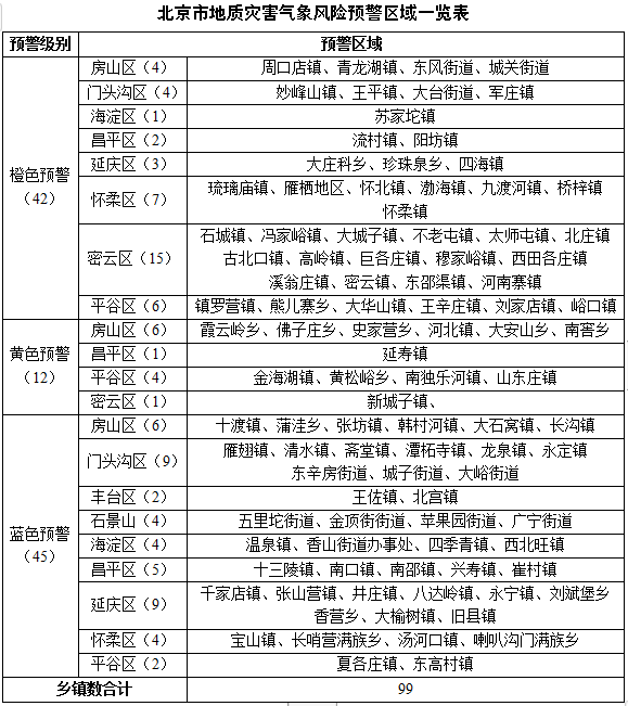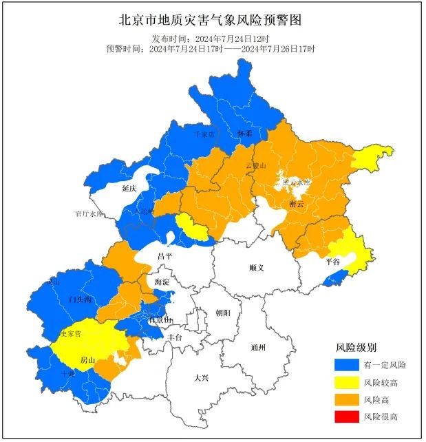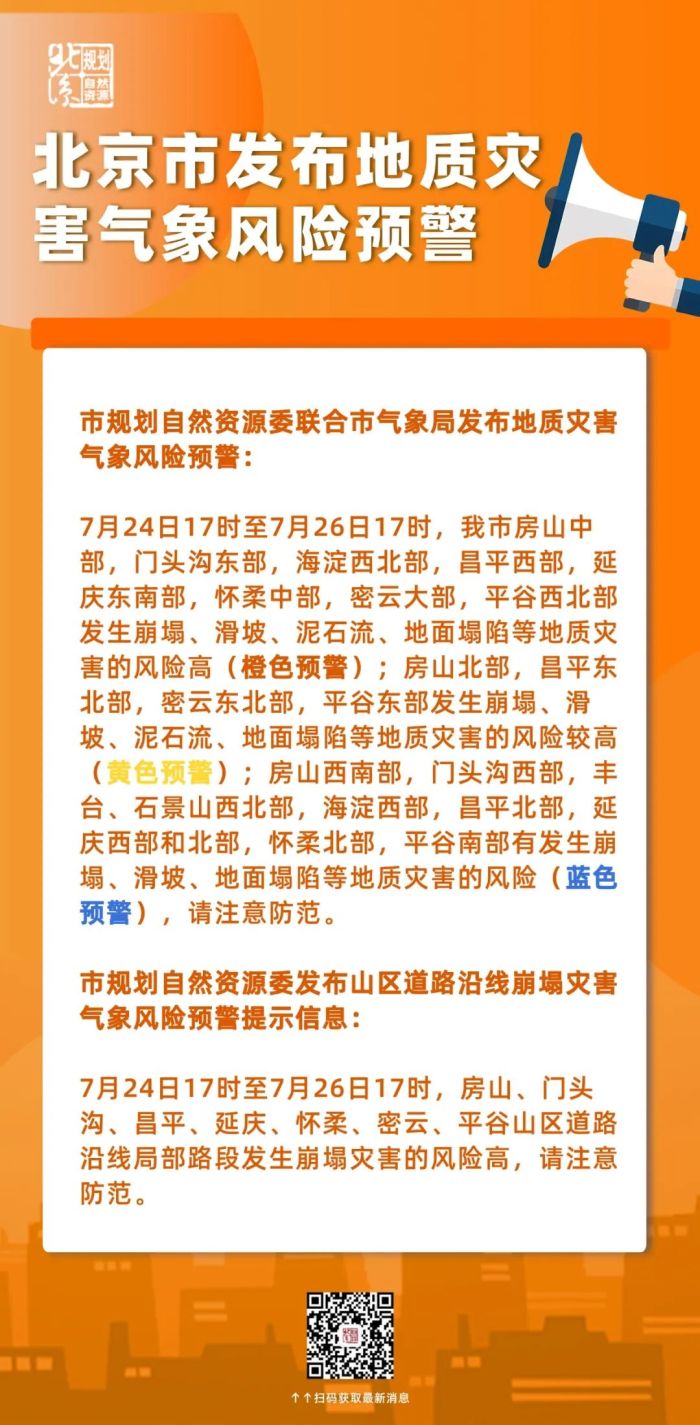 央视网消息:据北京市规划自然资源委7月24日消息,北京市升级发布地质灾害气象风险橙色预警。