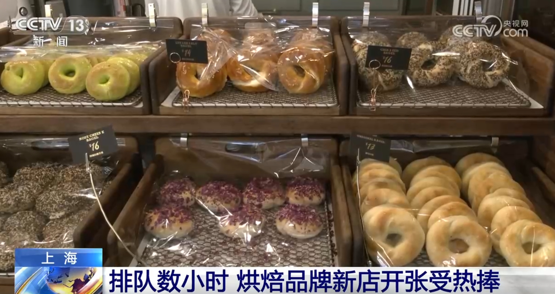 “排队四小时,打包十分钟”,近日,一家零售纽约贝果的烘焙专门店在上海南京路步行街营业,店里还原了美式复古装修风格,柜台售卖的新鲜贝果多达20余种口味,前来打卡的人把门店围得水泄不通。