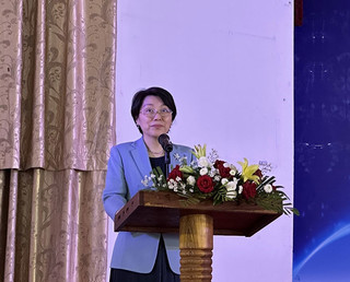 中国驻老挝大使方虹致辞。中国水电十四局供图。