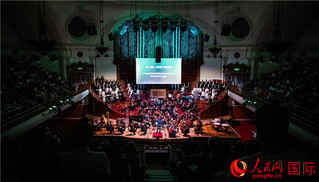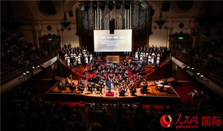 图为伦敦威斯敏斯特中央大厅《空海》交响曲演出现场。人民网 郭锦标摄