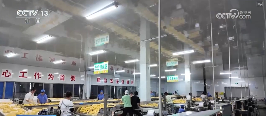刚刚采摘的鲜食玉米被运入工厂,经过脱皮、切头去尾、清洗消毒、高温杀菌等一系列严格流程即可包装上市,从采收到加工完成,全程只要3小时。