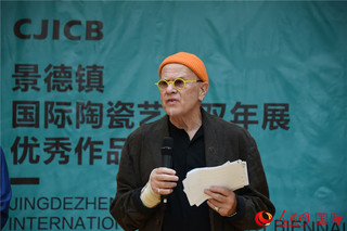 执行策展人、景德镇陶瓷大学美术学院副院长赵兰涛致辞。人民网记者 殷淼摄