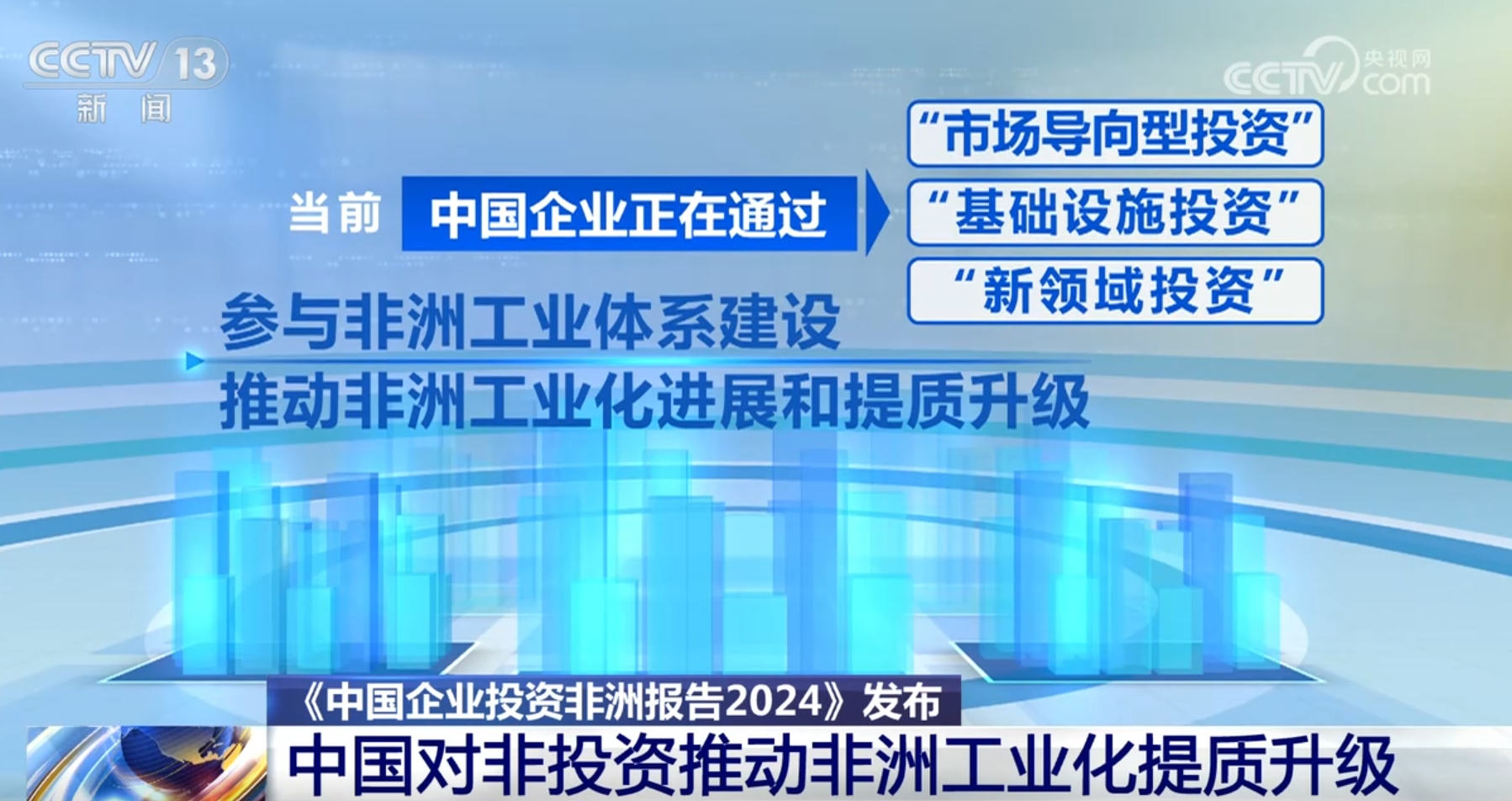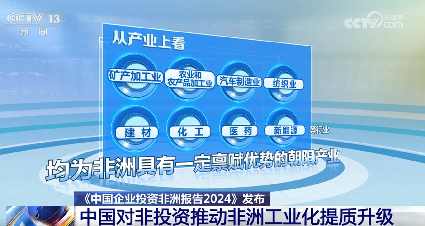 央视网消息:《中国企业投资非洲报告2024》8月23日在北京发布,报告由中非民间商会与国内外知名智库、专家合作撰写,主题为“中非投资合作促进非洲工业化”。报告指出,中国对非投资不仅促进了非洲的经济增长,也显著推动了非洲的工业化进程。