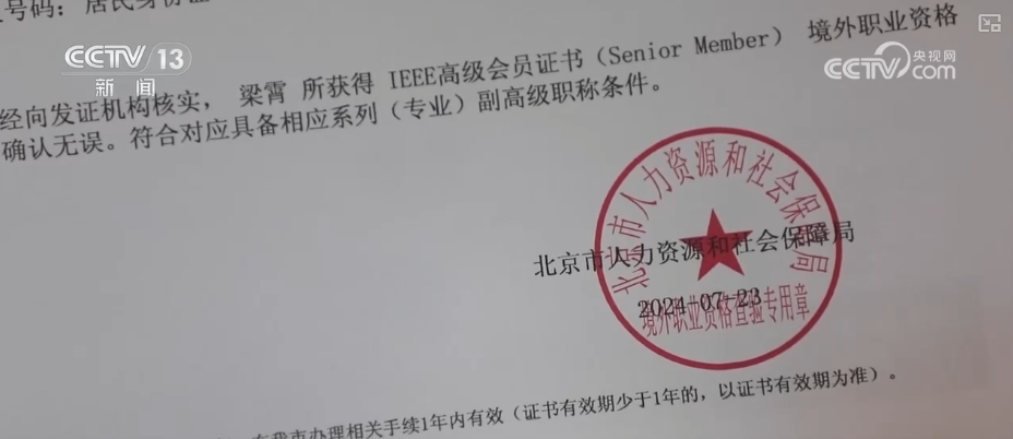梁霄此前在美国取得了电气与电子工程师协会的高级会员证书。最近,这张证书被认证为国内的副高级职称,帮助他获得了心仪的岗位。