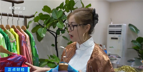 广东深圳荔秀服装批发市场某门店负责人 冯君竹:因为今年从春夏开始,国风比较流行,设计师也会受到鼓舞,受到大环境影响,使得销量翻倍了,其实在每一件衣服上都能找到一点属于中式的小元素。