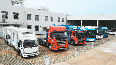 辽宁省积极培育新能源产业,在清洁能源装备制造业、风光核储等比较优势领域,涌现出一批国家级高新技术企业和“独角兽”企业。图为在洺源科技(大连)有限公司拍摄的使用氢燃料电池的客车、重型牵引车和货车。新华社记者 杨 青摄