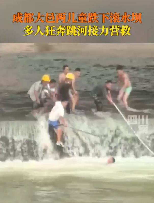 ·暖心接力!成都2名孩童跌下滚水坝,多人相继跳河营救。