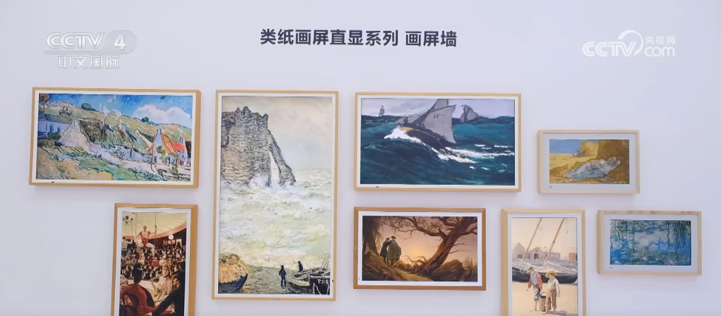 这幅挂在墙上的作品实际不是一幅画,而是可触控的类纸画屏,新的屏幕和显示技术可以做到高分辨率、防眩光和无频闪,看起来非常有质感,就像真的纸上的画一样,这样的技术已经在北京首都博物馆、大运河博物馆等落地。
