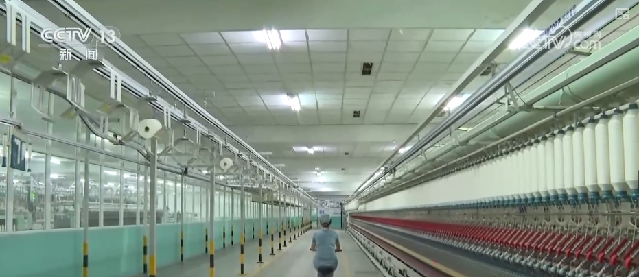 现在,车间里几乎看不到工人,但是生产效率却大大提升了。在这个工厂,一天能够产纱22吨,长度能够绕赤道66圈。