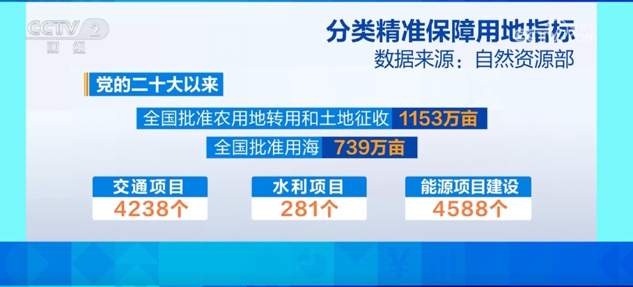 在强化建设用地规模管控和标准控制方面,2012年以来,全国单位GDP建设用地使用面积累计下降45%。党的二十大以来,全国批准农用地转用和土地征收1153万亩、批准用海739万亩,其中涉及4238个交通项目、281个水利项目、4588个能源项目建设。符合规划、符合国家产业政策和用地政策的有效投资项目,都能被给予计划保障。
