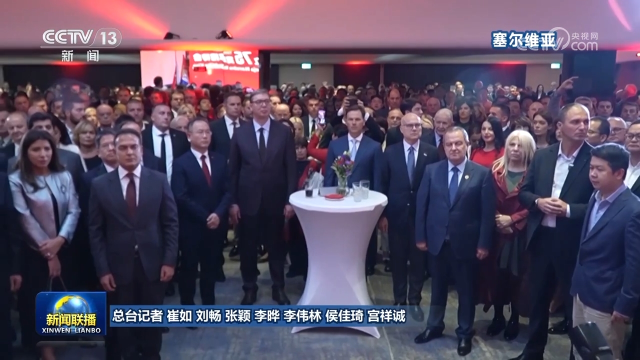在中国驻塞尔维亚使馆举办的国庆招待会上,塞尔维亚总统武契奇、议长布尔纳比奇、总理武切维奇等政要,以及多国驻塞使节、旅塞华侨华人等800多人欢聚一堂、畅叙友谊。
