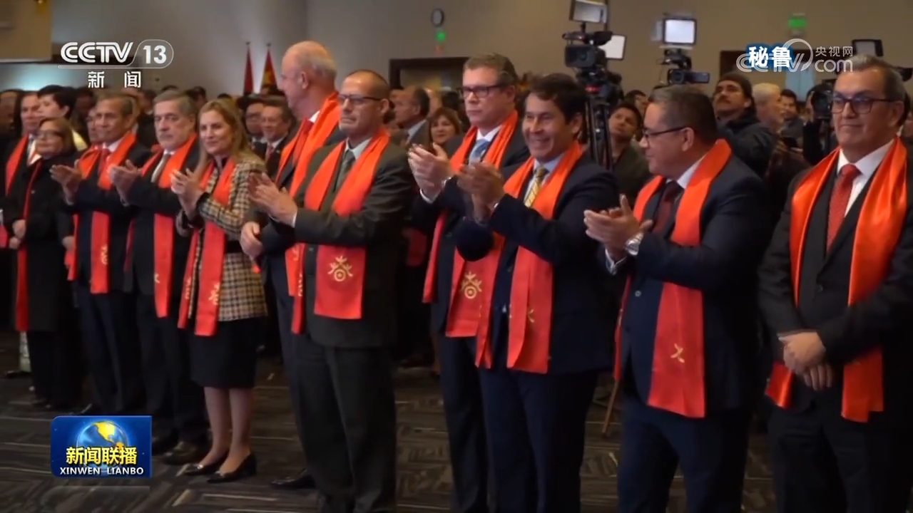 在中国驻秘鲁大使馆举办的庆祝活动中,中秘各界人士热烈祝贺新中国国庆。与会嘉宾共同欣赏两国名曲,观看中秘合作成果展等。