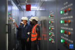 9月9日,在位于肯尼亚纳库鲁郡的索西安地热电站,方文军与当地工友查看电站运行参数。新华社记者 韩旭 摄