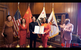 活动现场,布理徳市长向张建敏总领事颁发贺状,宣布2024年10月1日为旧金山“中美友谊与传统日“。李鑫江摄