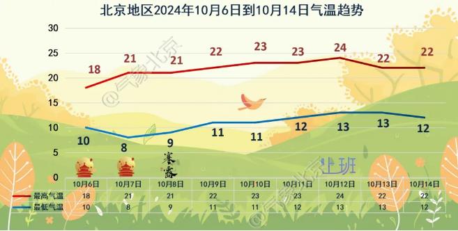 从目前来看,预计假期最后一天(10月7日),京城天气将再次转晴,白天最高气温在21℃上下,是一个适宜交通出行和户外活动的好天气。假期过后,气温相对平稳,但昼夜温差加大,早晚出行要注意添衣保暖。