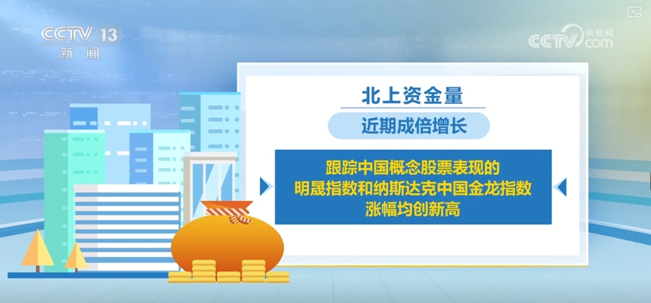 被视为外资购买“通道”的北上资金量近期成倍增长。跟踪中国概念股票表现的明晟指数和纳斯达克中国金龙指数涨幅均创新高。