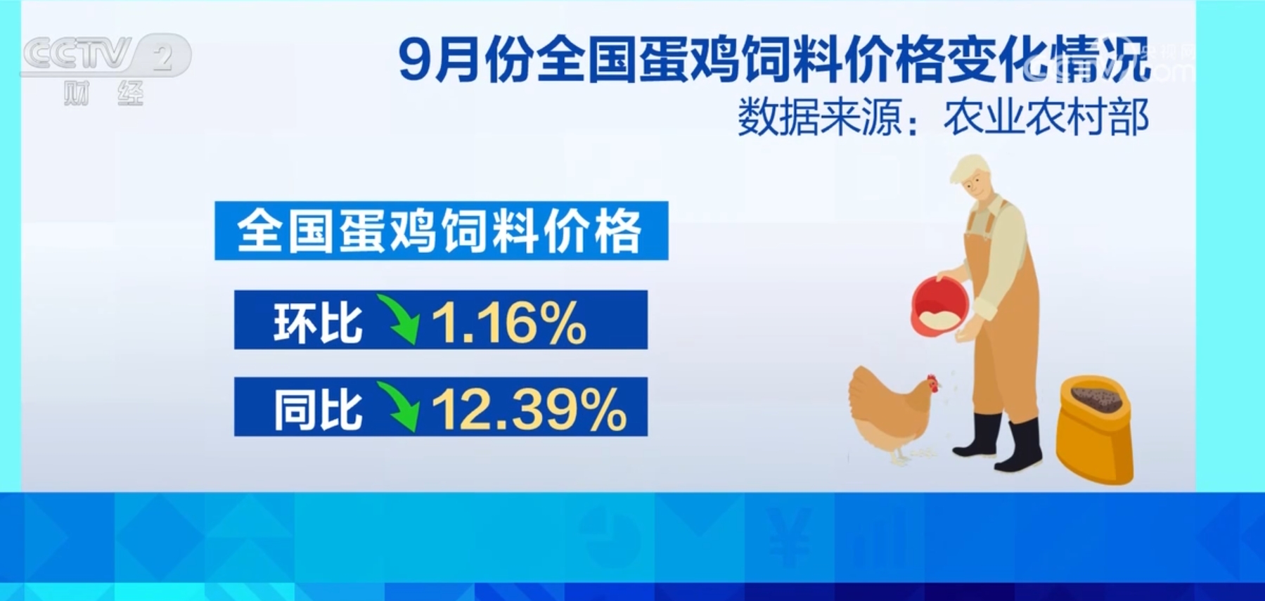 农业农村部数据显示,9月份,全国蛋鸡饲料价格环比下降1.16%、同比下降12.39%。