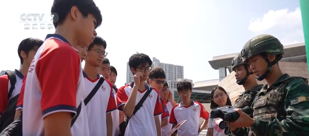 活动在庄严的升国旗仪式中拉开序幕。随后,官兵们给港澳青少年们现场演示了刺杀擒敌训练、军犬训导、无人机操作等军事课目。在装备展示区,30多种装备整齐亮相,港澳青少年们近距离感受到了军队的发展成就。