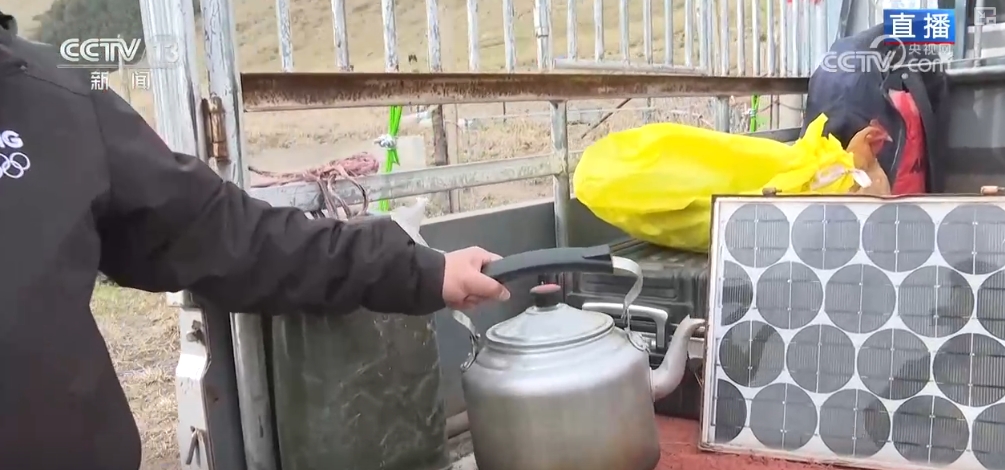 尼玛采楞为了山下5个月的生活除了准备铺盖被褥,还有做饭的锅碗瓢盆。特别是这个茶壶,牧民们有喝奶茶的习惯,一天都不能断。尼玛采楞说,别的不拿都行,茶壶绝对不能没有。