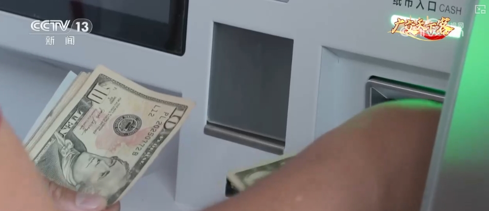 在这个展馆内的银行网点,有不少境外展客商正在排队办理业务。其中,这款外币自助兑换机最受欢迎。以500美元兑换成人民币为例,从核验身份、放钞到出钞,整个兑换过程只需3分钟,方便快捷。