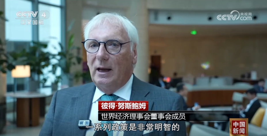 世界经济理事会董事会成员彼得·努斯鲍姆称:“我觉得中国经济最近采取的措施、一系列政策是非常明智的,这也是为什么我想要在这里设立一个办公室的原因。我期望未来同中国加强合作,也希望中国的发展越来越好。”