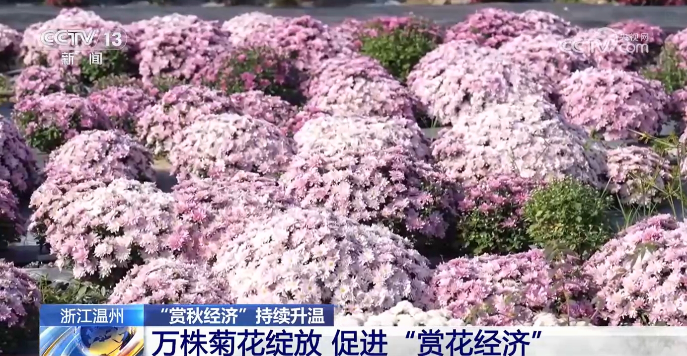 这两天,在浙江温州鹿城区一处菊花示范种植基地,万株菊花吸引不少游客前来观赏,也促进了“赏花经济”。