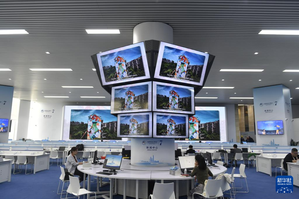 这是11月4日拍摄的第七届进博会新闻中心。新华社记者 鲁鹏 摄