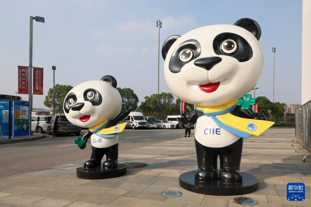 11月4日在第七届中国国际进口博览会举办场地——国家会展中心(上海)拍摄的进博会吉祥物“进宝”。新华社记者 王翔 摄