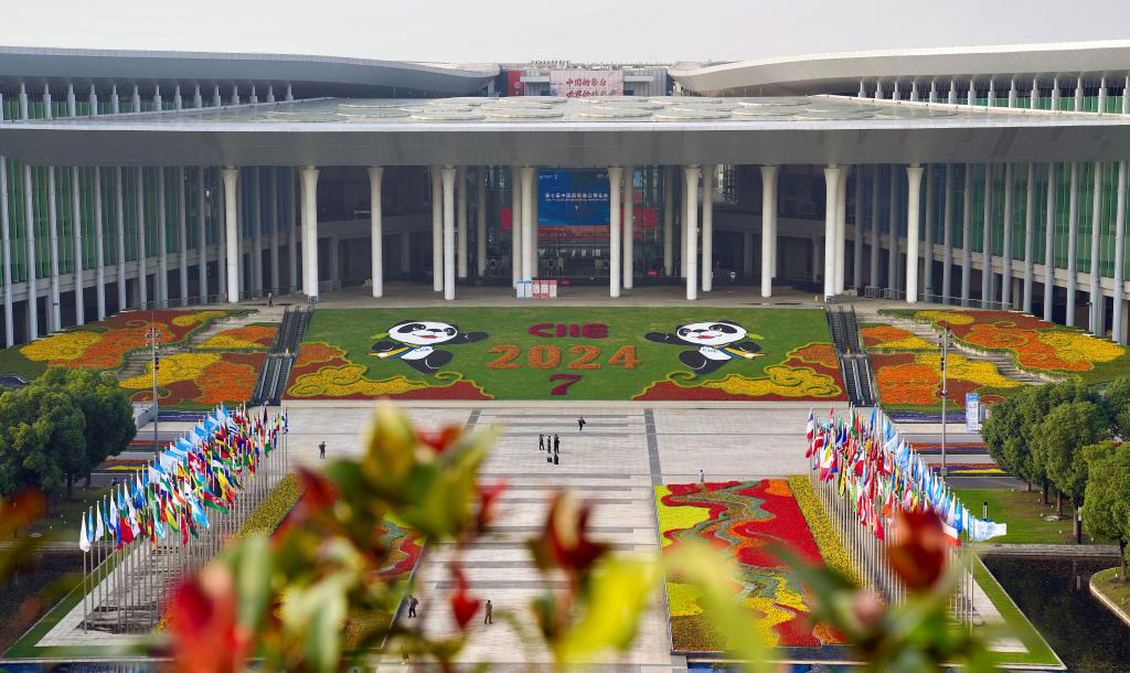 这是11月2日拍摄的第七届中国国际进口博览会举办地——国家会展中心(上海)南广场(图源:新华社)