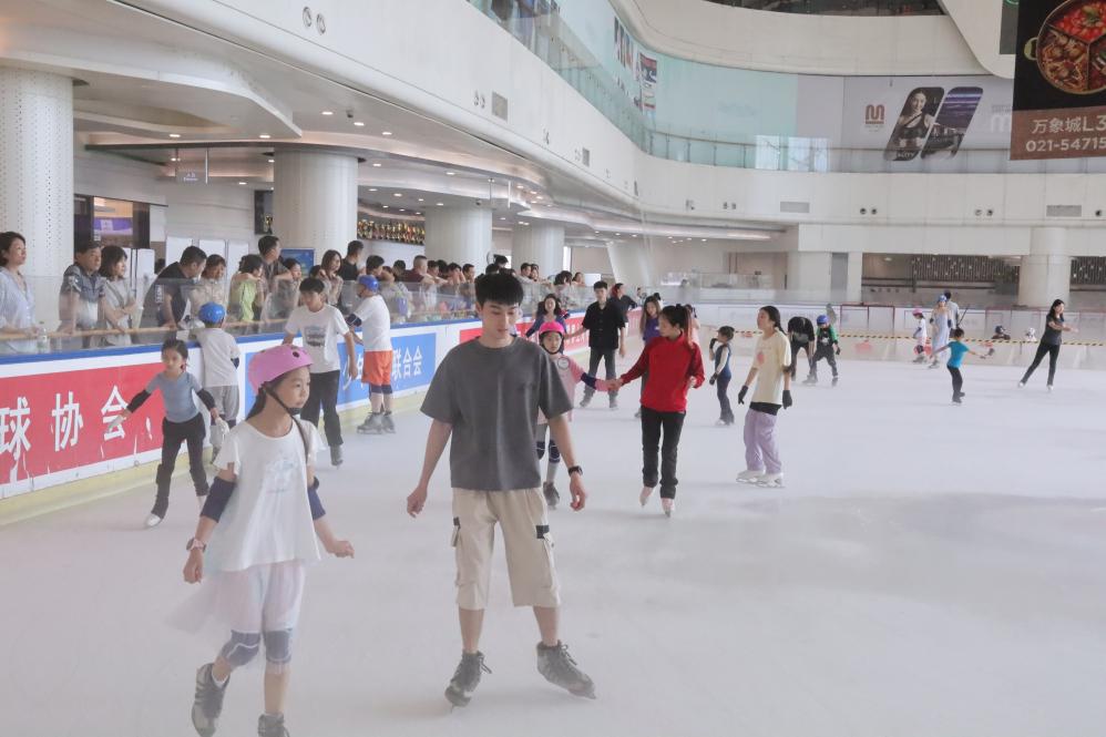 位于上海市闵行区的华润上海万象城冰场,今年暑假日均接待量超过340人次,其中约80%是前来训练的青少年学员。上海市民王蓓的女儿长期在此训练,商圈餐饮、游乐、电影院、书店、购物等业态齐全,女儿滑冰训练结束后,一家人在此休闲一整天。